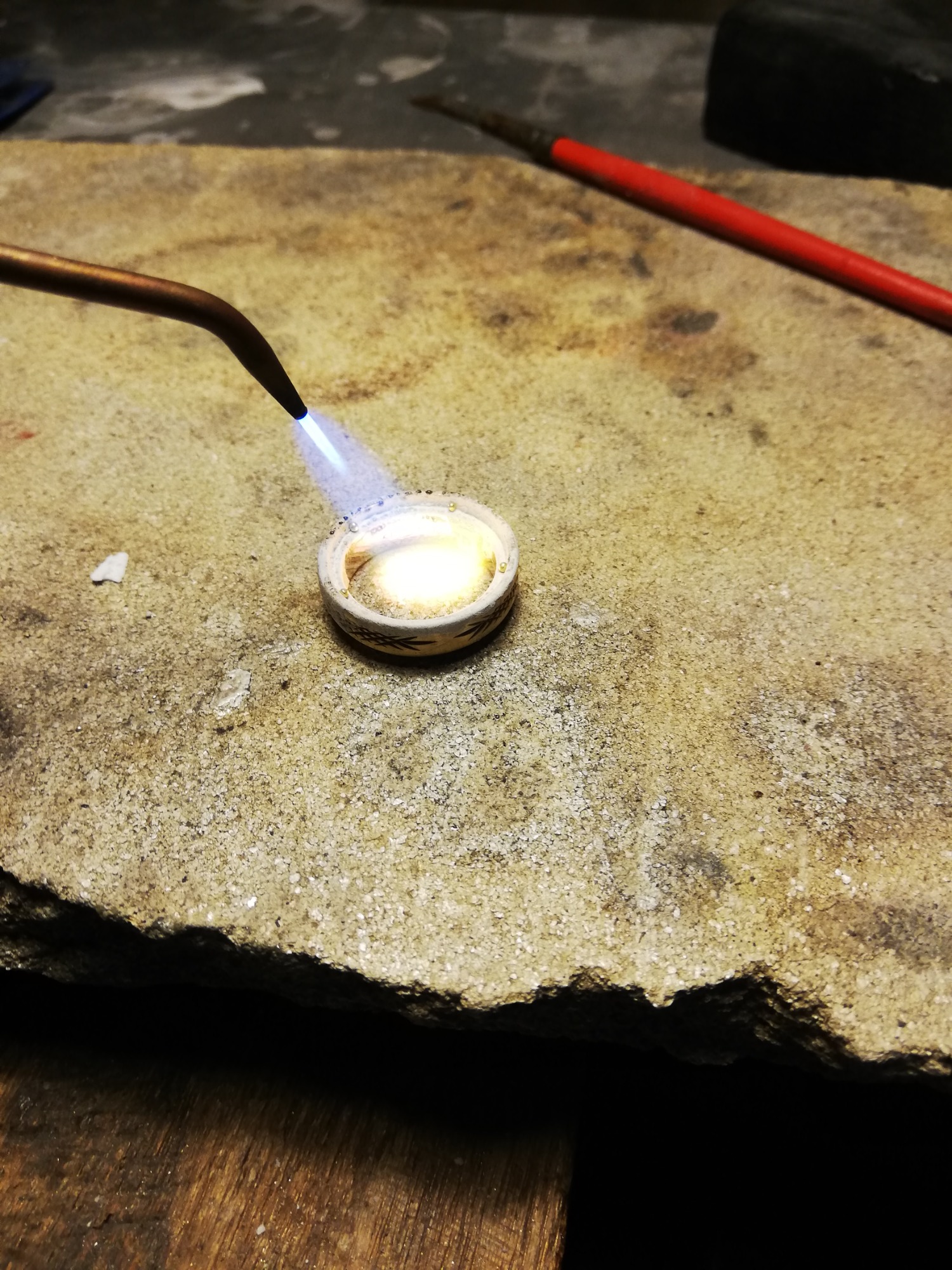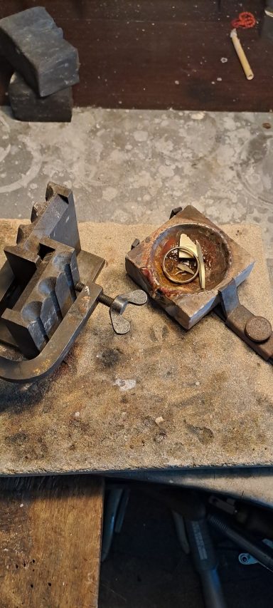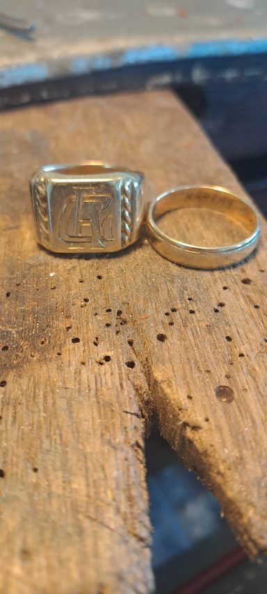 Vaak geeft het troost om de achtergebleven sieraden van uw dierbare zelf te gaan dragen, soms is het genoeg om ketting die je vader altijd droeg om je eigen hals te hangen, of een ring naar jouw eigen maat te laten maken, maar het komt ook vaak voor dat de sieraden smaak van je dierbare niet aansluit bij die van jou. Ik kan hier een uitkomst bieden door samen met u een ontwerp te maken wat wel bij je past. dit kan door kleine aanpassingen te doen zoals een steen toe te voegen of van een ring bijvoorbeeld een hanger te maken, maar ik kan ook de sieraden in zijn geheel omsmelten tot een heel nieuw sieraad. van beide heb ik hieronder een voorbeeld geplaatst over het proces.